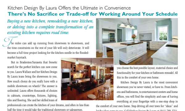 Kitchen Design by Laura, LLC is unlike any other Kitchen and Bathroom Design and Remodeling Company. Our Mobile Showroom comes directly to YOUR home where you can view and compare product samples in the comfort of your own home.